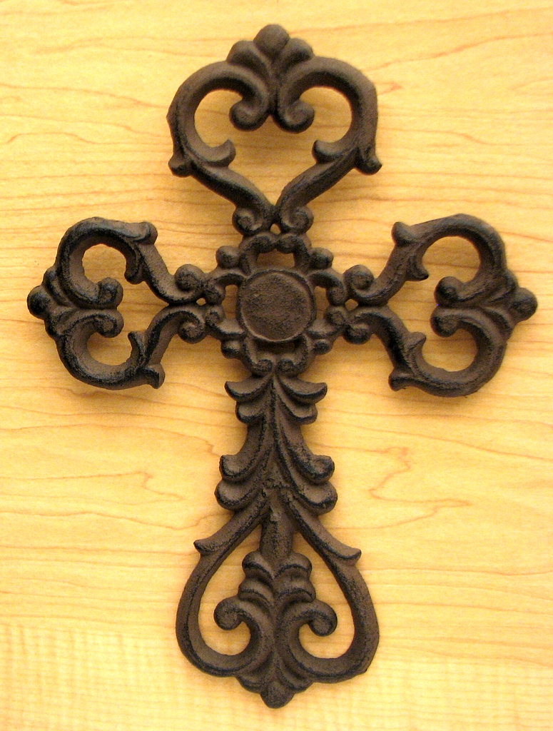Made from solid cast iron, these medium-sized crosses are beautifully detailed, heavy in weight, and built to last. A hanger is attached on the back of each cross for easy wall mounting, making them ideal for homes, churches, offices, or craft projects.