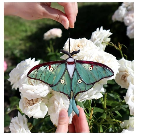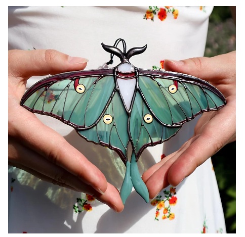 Luna Moth Stained Glass Window Hanging – Butterfly Suncatcher & Garden Art, Perfect Mother’s Day & Birthday Gift for Mom