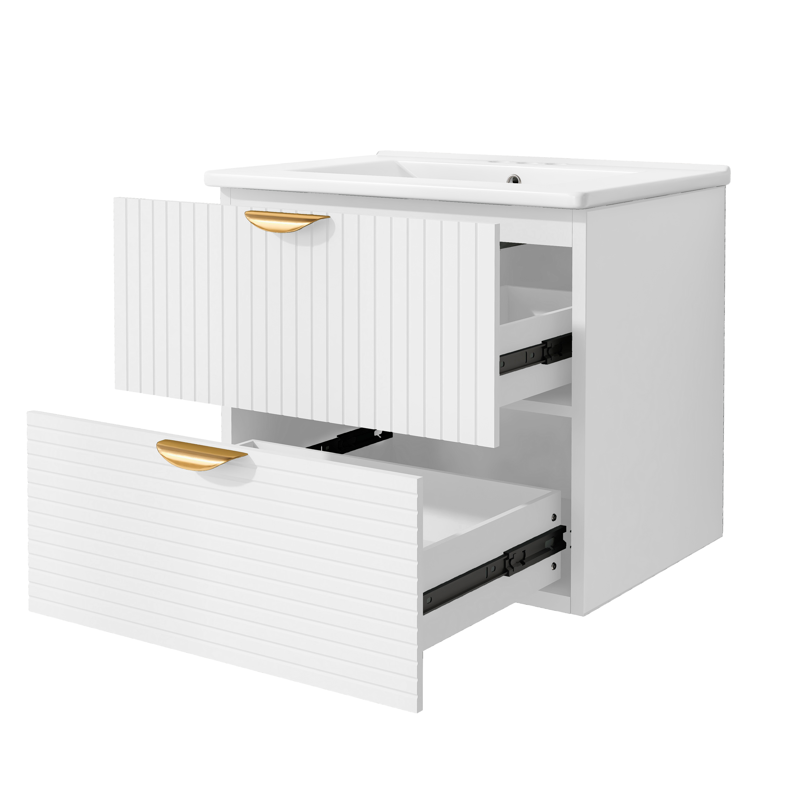 Modern 24-Inch Wall-Mounted Bathroom Vanity with 2 Drawers - White | Space-Saving & Stylish