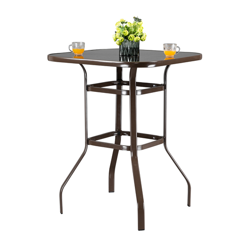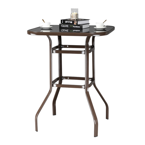Wrought Iron Glass High Bar Table – Modern Patio & Pub Table with Matte Brown Frame & Black Tempered Glass (31.5"x31.5"x39.76")