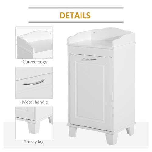 Upgrade your home organization with this multi-functional tilt-out laundry hamper cabinet. Designed for convenience and style, this compact and elegant storage unit can be used as a laundry hamper, recycling bin, toy bin, or extra storage space. Its white engineered wood finish complements any decor, making it an excellent addition to bathrooms, laundry rooms, or playrooms.